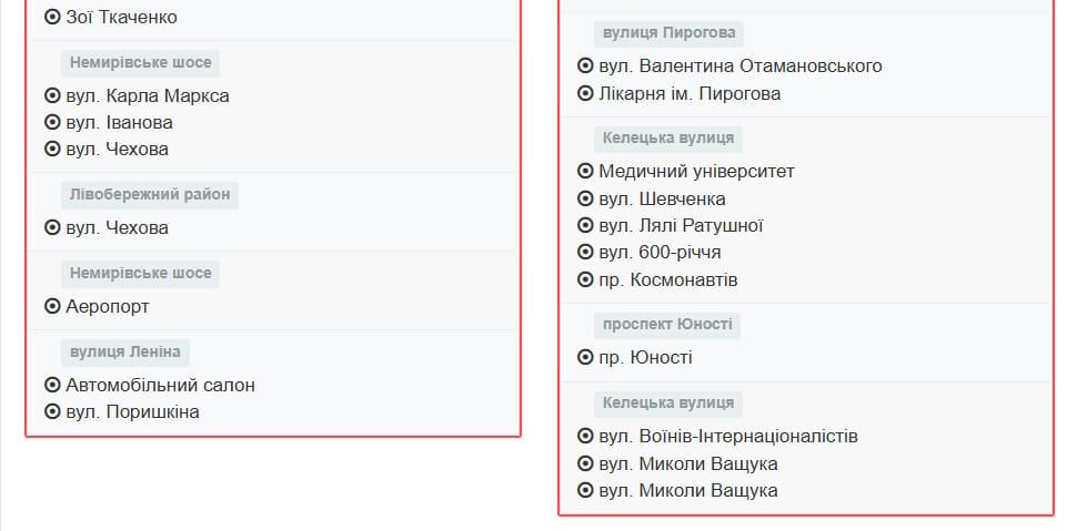 - вул. Привокзальна — зручна зупинка для тих, хто збирається на поїзд або повертається з залізничного вокзалу.