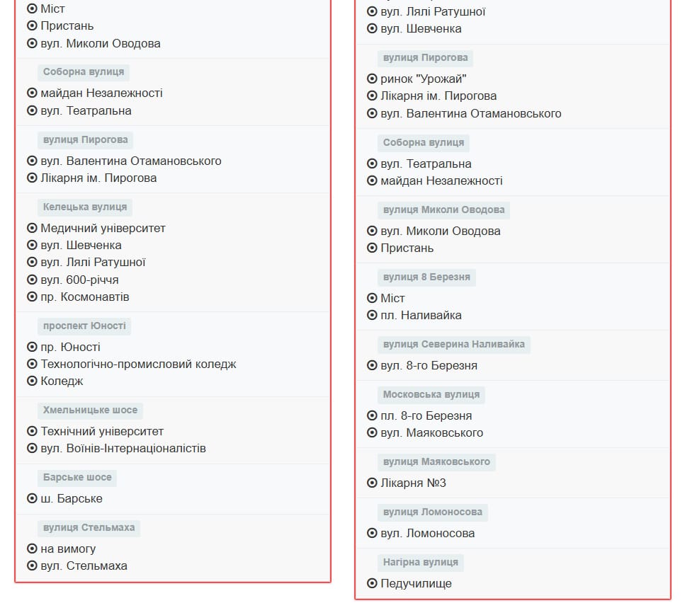 - ш. Барське — кінцева точка маршруту, підходить для тих, хто живе або працює на околиці міста.