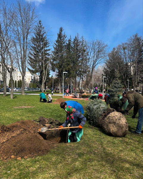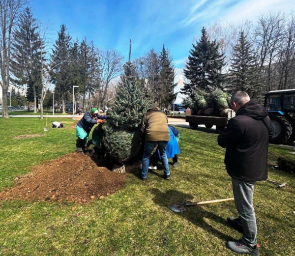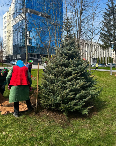 Блакитні ялинки та молоді клени висадили у Вінниці (Фото)