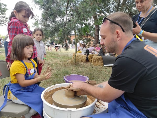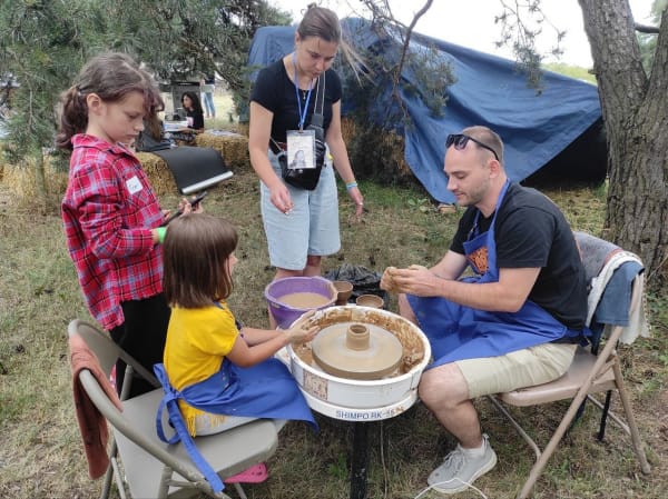 «Вдячні нашим незмінним помічникам Маргариті Поліщук (Арт-клуб м. Ладижин) та Дмитру Рижому (Keram Art Misto). Вони провели майстер-класи з малювання акрилом на полотні та гончарства.