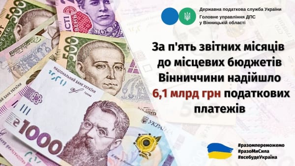 До місцевих бюджетів Вінниччини надійшло 6,1 млрд грн податкових платежів