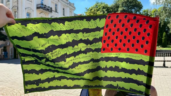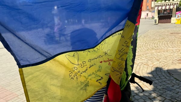 «Я відвідав понад 15 міст України. В мене на прапорі написані назви населених пунктів де я бував. Від Закарпаття і аж до Вінниці нарешті добрався. Збираю гроші, бо треба хлопцям допомагати чим можеш», – розповідає дядя Гриша.