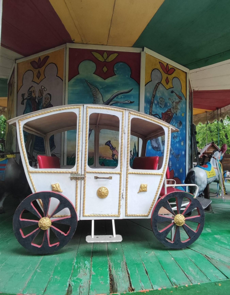 "Карусель, вперше запрацювала в 1948 році. В ній встановлений редуктор від танку. Цей атракціон одна з родзинок серед атракціонів. Проте, в документах вона рахується як "руська карусель" через зображення на ній відповідних казок. У дирекції провівши декомунізацію вирішили замінити малюнки казок на українські та українські народні. Культурна самоідентифікація – це важливий елемент в боротьбі за «наше»", – йдеться у повідомленні.