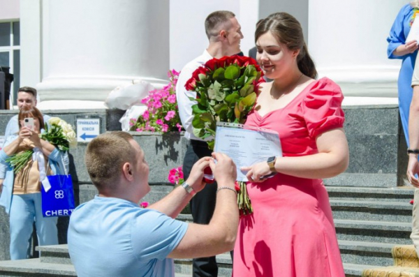 30 червня у Вінницькому національному медичному університеті відбулося вручення дипломів про завершення навчання студентами. Під час урочистої церемонії хлопець освідчився одній з випускниць.