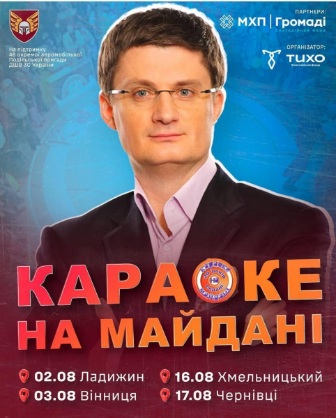 "Шоу «Караоке на майдані» повертається, щоб підтримати наших захисників. У серпні улюблене шоу мільйонів глядачів — «Караоке на майдані» знову вийде на центральні площі країни, та цього разу не лише заради пісень. Чотири міста України на один день стануть центрами підтримки 46 окремої аеромобільної Подільської бригади ДШВ ЗСУ. На сцені злиються мистецтво, єдність і допомога. Під час заходів можна буде не лише поспівати, а й підтримати тих, хто боронить Україну — зробити донат, придбати мерч, долучитися до аукціонів або просто поспілкуватися з військовими", – йдеться у повідомленні.
