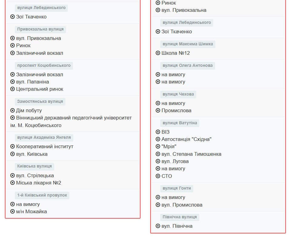 Зупинки маршруту