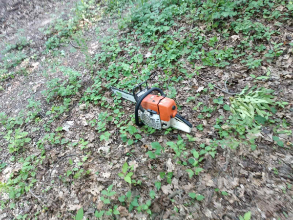 На місці події інспекторами було виявлено бензопилу та автомобіль та викликано правоохоронні органи, які вилучили знаряддя злочину.