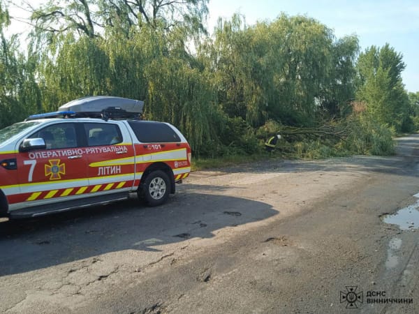 Дерева падали також зафіксовані за межами селі Кожухів Вінницького району, на автошляху М-30 Краснопільської громади Гайсинського району та на вулиці Привокзальній в Вінниці.