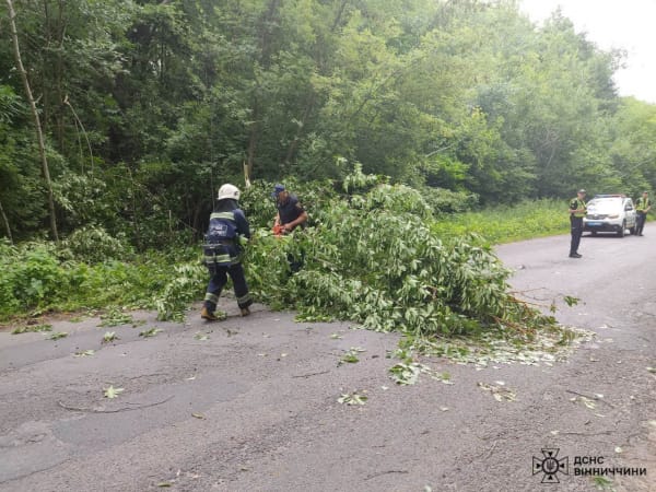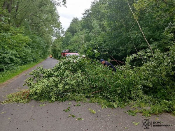 Дерева падали також зафіксовані за межами селі Кожухів Вінницького району, на автошляху М-30 Краснопільської громади Гайсинського району та на вулиці Привокзальній в Вінниці.