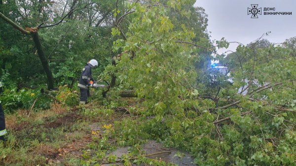 Рятувальники чотири рази виїжджали на розкряжування повалених дерев, які попадали через сильний вітер на проїжджі частини доріг у Вінницькому, Гайсинському, Тульчинському районах області та місті Вінниці.