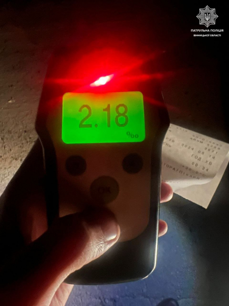 «Чоловік пройшов огляд на спецприладі Драгер. У його організмі виявили 2,18 проміле алкоголю.