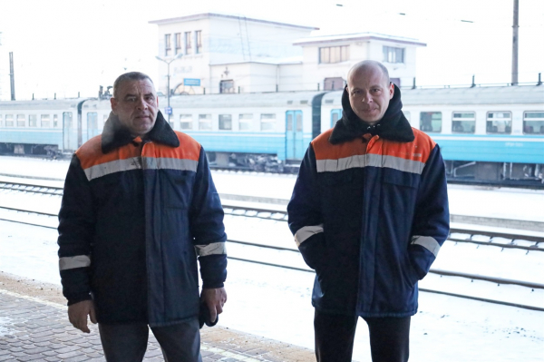 Станційні робітники Микола Мохнач і Павло Дідик додають: у нічні зміни допомагають пасажирам з важким багажем, людям з інвалідністю, пораненим військовим, стежать за порядком і безпекою на вокзалі.