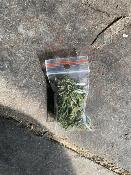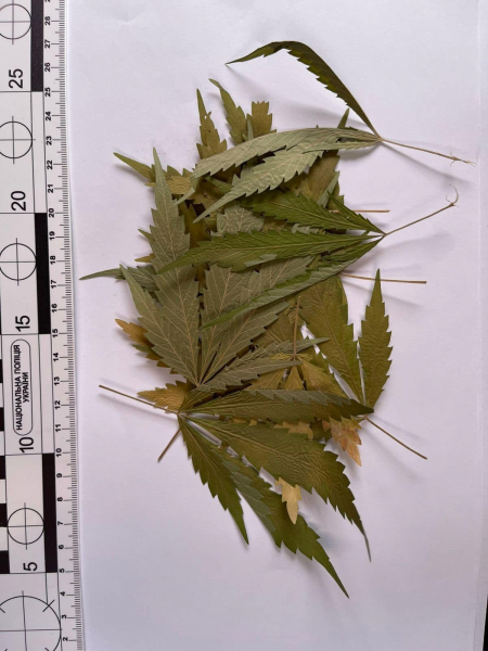В ході санкціонованого обшуку було виявлено: сухі листки, схожі на листя коноплі; 107 зіп-пакетів з речовиною сіро-зеленого кольору, схожою на марихуану; 8 полімерних та металевих коробочок з речовиною сіро-зеленого кольору, схожою на марихуану. Вилучене направили на експертизу.