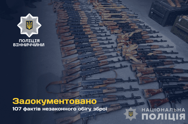У Головному управлінні Національної поліції Вінницької області повідомили статистику незаконного обігу зброї. 107 фактів цих злочинів припинили правоохоронці.