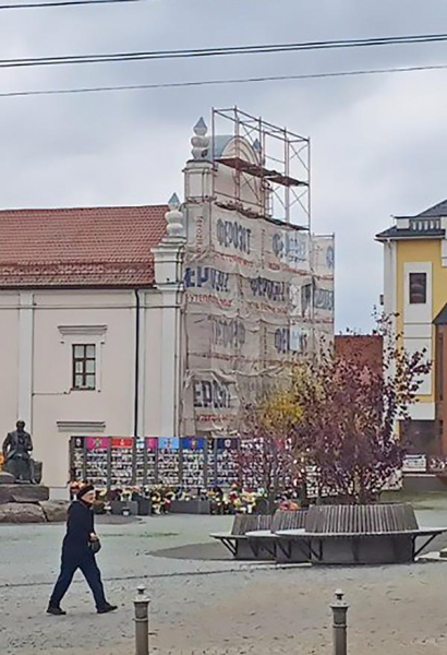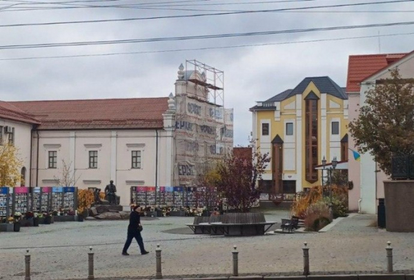 У Вінниці почали аварійні роботи біля архітектурної пам'ятки на площі Тараса Шевченка. Риштуванням закрили фасад колишнього колегіуму Єзуїтського монастиря, в якому сьогодні знаходиться обласний державний архів.