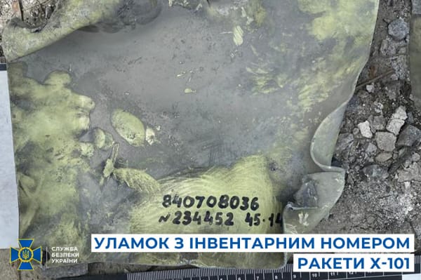 На місці трагедії знайдено уламок двигуна крилатої ракети Х-101. Слідчо-оперативна група СБУ працює на місці трагедії з перших хвилин і робить усе можливе, щоб зібрати кожен речовий доказ.