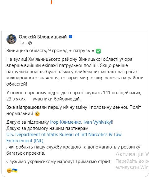 Про це у соцмережах повідомив глава Патрульної поліції України Олексій Білошицький.