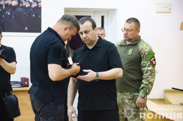 За особисту мужність і самовіддані дії, виявлені в захисті державного суверенітету та територіальної цілісності України, здійснення заходів із забезпечення Національної безпеки й оборони, відсічі і стримуванні збройної агресії російської федерації, за вірність Присязі поліцейського Указами Президента України орденами «За мужність» ІІІ ступеня, відзнаками «За оборону України» та медалями «Захиснику Вітчизни» посмертно нагороджені: