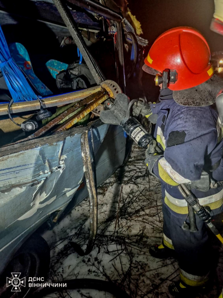 "Внаслідок зіткнення вантажного автомобіля DAF та мікроавтобуса Mercedes загинула одна людина, ще четверо — постраждали. 24-річного пасажира з салону понівеченого мікроавтобуса за допомогою спецінструменту надзвичайники деблокували та передали бригаді екстреної медичної допомоги", – йдеться у повідомленні.