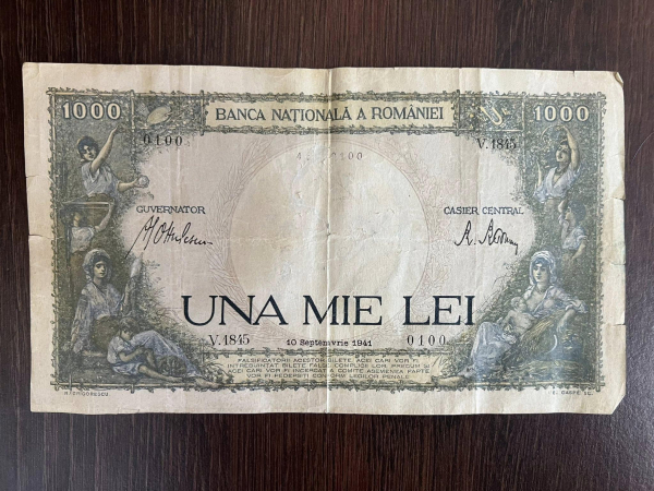 рідкісну банкноту «Una Mie Lei» Королівства Румунії номіналом 1000 леїв, 1941 року;
