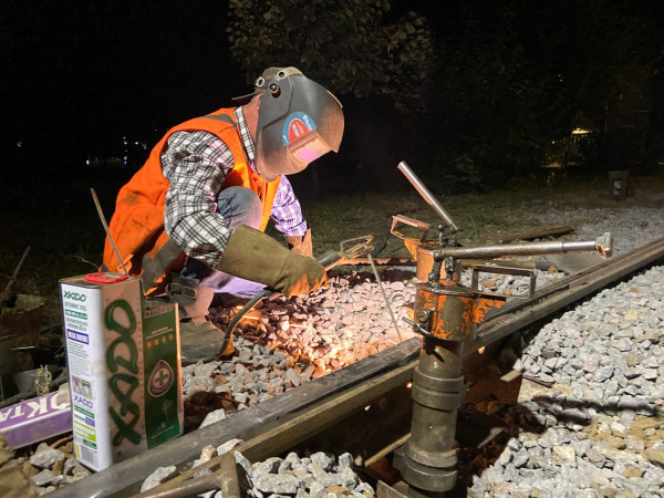 «На зварювання одного стику я витрачаю понад годину часу, тому за ніч це 3-4 стики. Працюючи в темну пору доби ми не заважаємо їздити трамваям, адже розуміємо, скільки людей ними користується, їдучи на роботу, дітей везуть в школи, садочки, у справах. І ми можемо робити усе спокійно», – каже зварювальник ВТК.