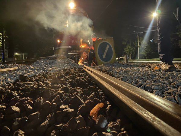 Ремонт вже виконали у напрямку руху трамвайних вагонів до площі Калічанська. Як і раніше, бригади працюють переважно вночі, після зменшення інтенсивності руху транспорту та у вихідні дні.
