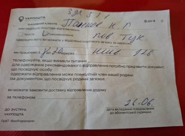 Вінничанка прикріпила до допису фотографії повістки, яка прийшла рекомендованим листом поштою. Також жінка опублікувала попереднє запрошення до ТЦК датоване 2023 роком та сповіщення про загибель сина на фронті також видане установою, яка здійснює облік військовозобов'язаних громадян.