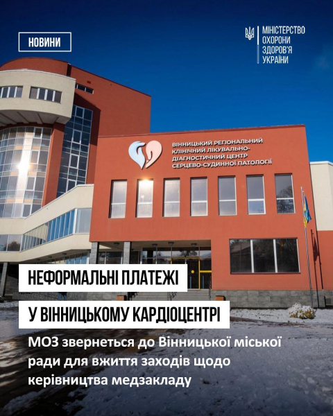У Міністерстві охорони здоров'я України відреагували на скандал, що виник у Вінницькому регіональному лікувально-діагностичному центрі серцево-судинної патології. Вимагають від міської ради для вжиття заходів щодо керівництва кардіоцентру.