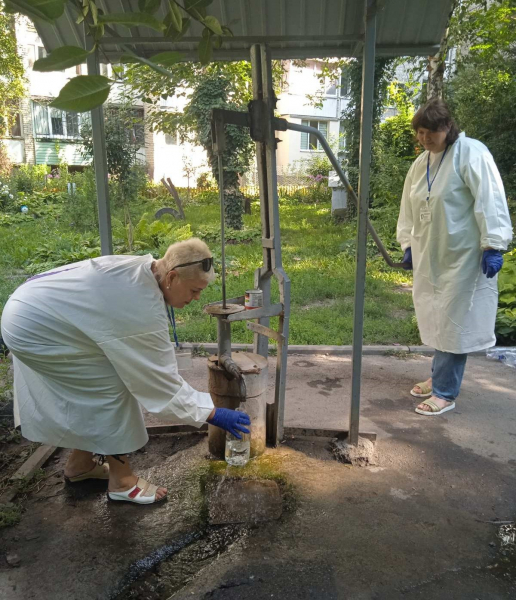 Для визначення якості води в Замостянському районі міста, фахівці відділу епідеміологічного нагляду (спостереження) та профілактики неінфекційних хвороб Людмила Черниш та Олена Поберезька відібрали зразки з 10 громадських криниць і доставили в лабораторії нашої установи для дослідження за санітарно-хімічними, мікробіологічними та паразитологічними показниками.