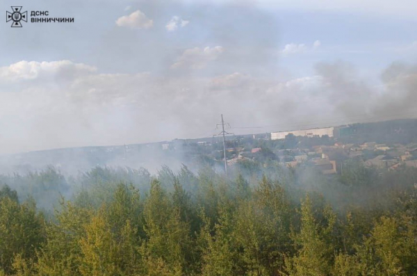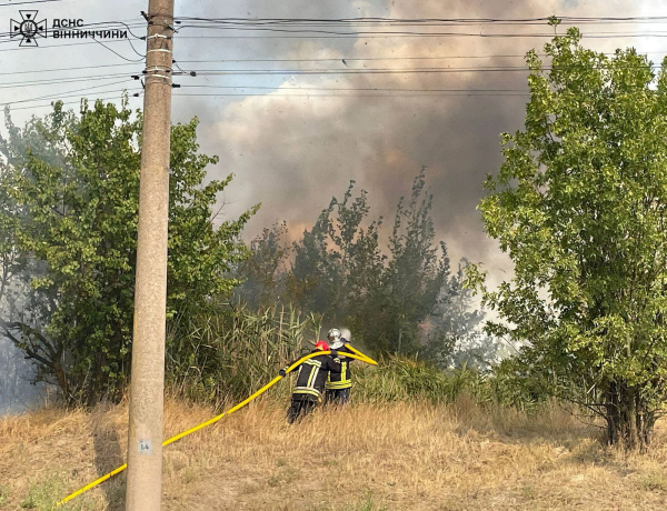 Вчора під вечір рятувальники ліквідували займання сухої трави та чагарників на вулиці Батозькій у Вінниці. Орієнтовна площа пожежі склала понад 2,5 га.