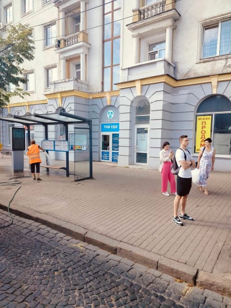 Поверхні павільйонів відчищали та поливали зі шланга, а також наводять лад довкола зупинок.