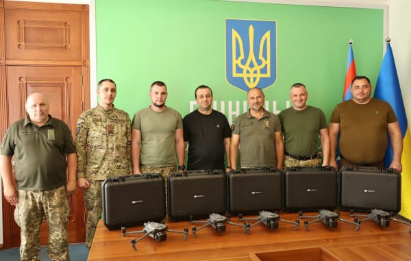 Потужні квадрокоптери DJI Mavic 3 Enterprise для 170 батальйону 120 бригади ТрО ЗСУ. Начальник Вінницької ОВА Сергій Борзов передав бойових “пташок” керівнику служби безпілотних систем Юрі Басюку.
