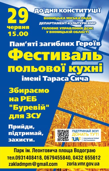 – збір коштів на потреби ЗСУ та реабілітацію ветеранів – фестивальна тарілка донат 200 грн;
