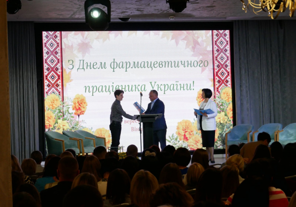 Перша частина заходу була присвячена урочистим привітанням та нагородженню фармацевтів з нагоди професійного свята.