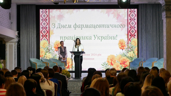 Голова правління ГО Вінницької обласної асоціації фармацевтів «Кум Део» Лариса Просяник привітала колег з 25-ю річницею Дня фармацевтичного працівника України, зокрема, зазначивши: