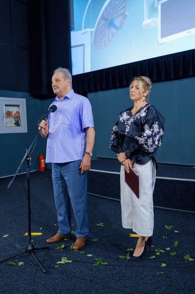 Вітання приймали у кінотеатрі Родина. Привітала медиків й директорка департаменту охорони здоров’я та реабілітації Вінницької ОВА Ольга Задорожна.