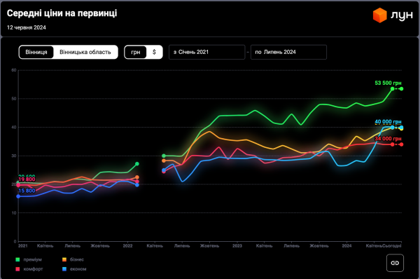 Бізнес-клас зараз вартує 39 900 грн, преміум – 53 500 грн (зміни на 7 000 грн або 21.3% та 6 400 грн або 13.6% відповідно).