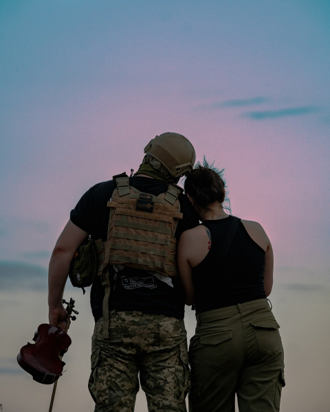 Скрипаль та військовослужбовець 59 ОМПБр ім. Якова Гандзюка, молодший сержант Мойсей Бондаренко, воює на передовій. У вільний час грає на скрипці для побратимів.
