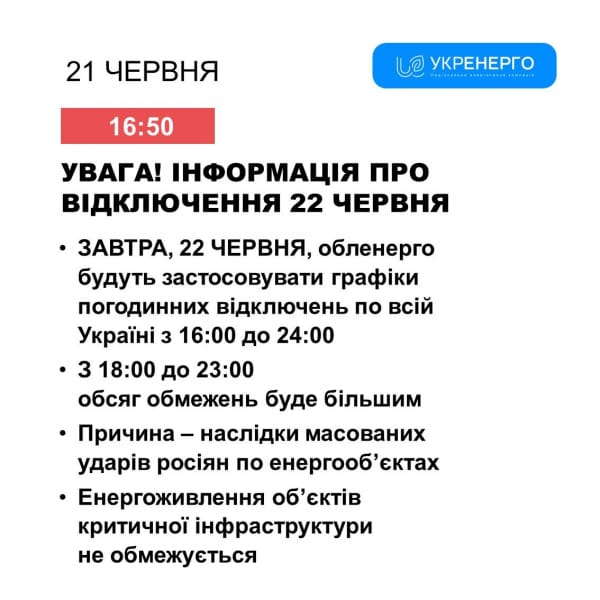 В одній інформації НЕК «Укренерго» обіцяє запроваджувати погодинні відключення електроенергії по всій території України з 16 години дня до 24 години ночі.