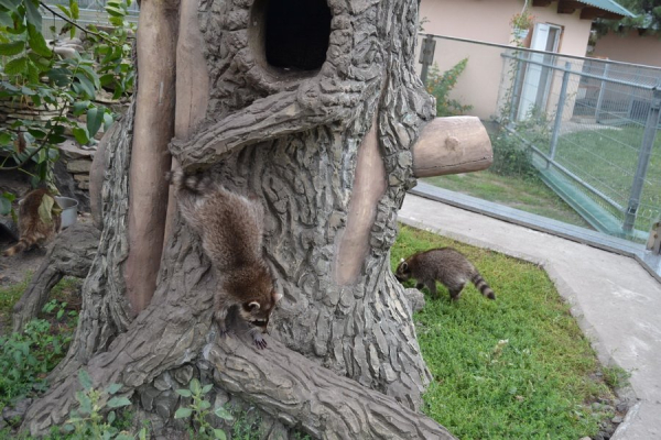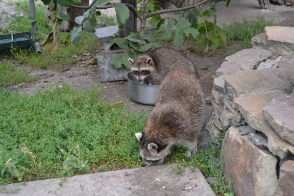 «Єноти-полоскуни вже менше сидять у своїх схованках. Малюки підросли і все частіше їх можна побачити на території вольєру. Як і всі малі діти, вони дуже допитливі. Спостерігають за батьками та за всім, що відбувається навколо.