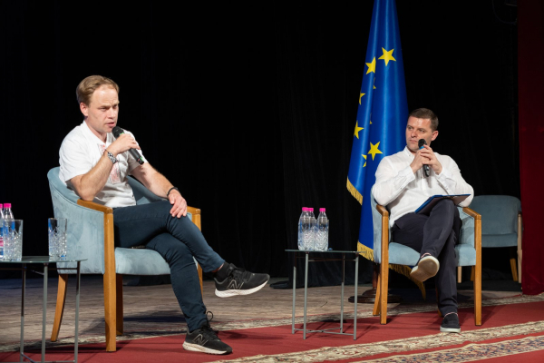 Другу панельну дискусію провів сам Ярослав Юрчишин, він говорив та дискутував із модератором та залом на тему: «Стан свободи слова і роль ЗМІ у воєнний час».
