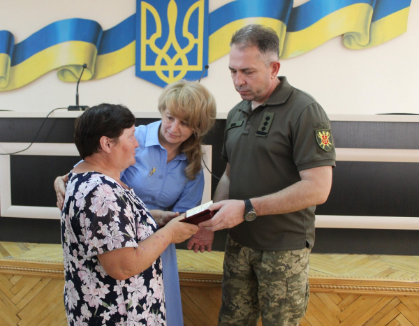 Начальник Жмеринської районної військової адміністрації Інна Цимбал та начальник Жмеринського РТЦК та СП полковник Олександр Крсек вручили родинам захисників почесні нагороди, присвоєні їм посмертно.