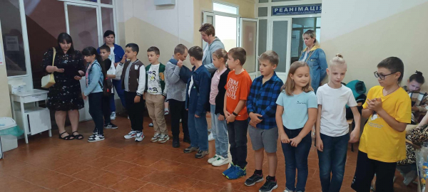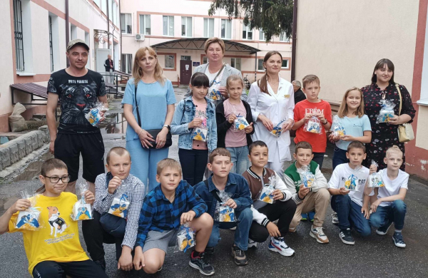 Діти з початкової школи №5, вихованці табору «Веселкова планета», завітали до Захисників, які перебувають на реабілітації у ще одному місцевому закладі охорони здоров’я. Діти пригостили бійців смаколиками, вручили обереги, підтримали віршами.