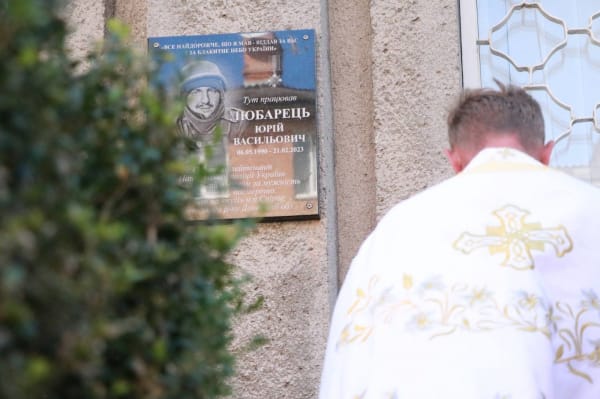 В Козятині Вінницької області відкрили меморіальну дошку на честь бійця 14 штурмової бригади НГУ “Червона Калина” старшого солдата Юрія Васильовича Любарця. Дошка з’явилась на будівлі районного відділку Національної поліції.