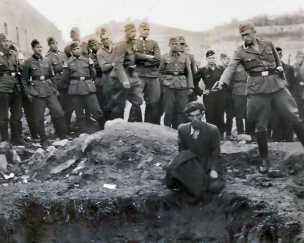 Команда Einsatzgruppe C, одна з кількох мобільних каральних груп, що діяли на щойно окупованих територіях СРСР, займалася «зачисткою» регіону від «євреїв і партизанів» напередодні візиту Адольфа Гітлера. Одним з її членів був Якобус Оннен (Jakobus Onnen) – вчитель французької, англійської та фізкультури, народжений у 1906 році в німецькому селі Тіхельварф біля нідерландського кордону.