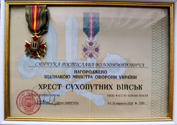 Ростислав Синчук з села Кропивна Уланівської громади Хмільницького району отримав відзнаку "Золотий Хрест" та "Хрест Сухопутних військ". Чоловік служить у 26 артилерійській бригаді імені генерал-хорунжого Романа Дашкевича.