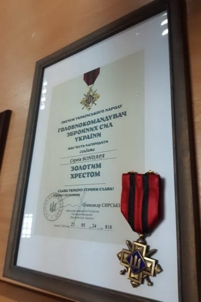 «Відповідно до наказу Головнокомандувача Збройних Сил України від 25.05.2024 №818, солдата запасу Сергія Анатолійовича Бондара з села Лозова нагороджено «Золотим Хрестом», — йдеться у повідомленні.