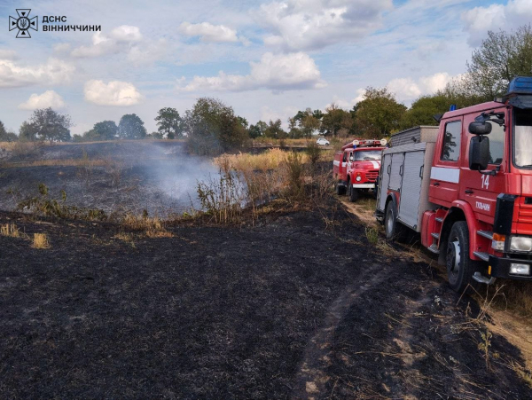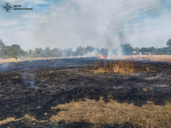 На відкритих територіях горіло за межами міста Тульчин, сіл Межирів Жмеринської громади, Остапківці Немирівської громади, Щурівці Кунківської громади та Шпиків Тульчинського району.