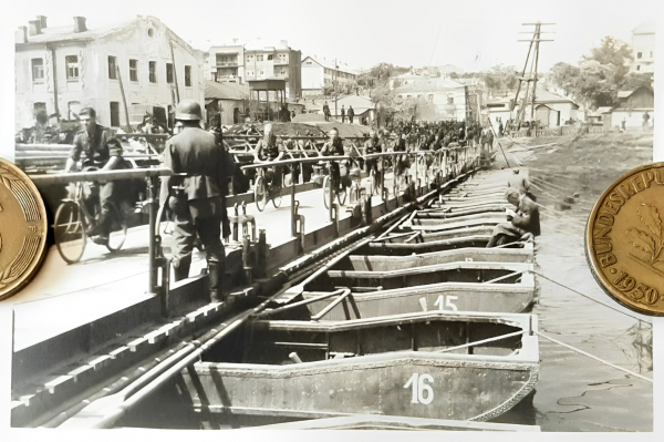 Цікаво, що міст хоча й дерев'яний, але вже не понтонний, а стаціонарний. Якщо дата на фотографії вірна, то це означає, що німецькі війська спорудили новий міст вже за 20 днів після окупації Вінниці (старий міст було зруйновано радянськими військами при відступі).