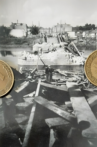 Підірваний центральний міст. Погляд з острова Кемпа на Замостя.